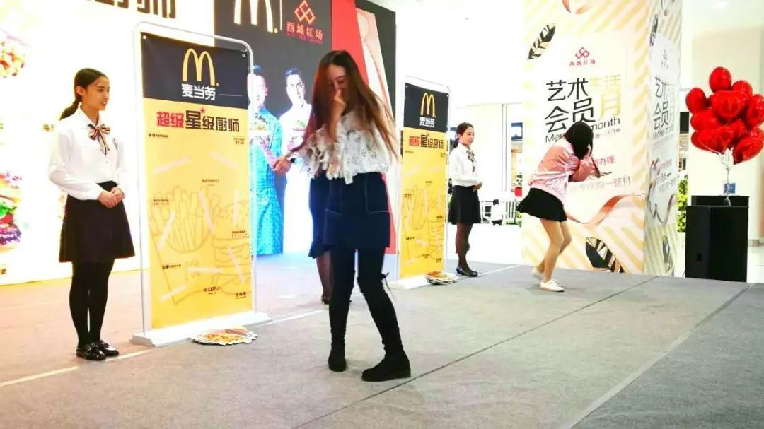 規(guī)則:每人將一杯水舉到頭頂,裁判宣布開(kāi)始后參賽者原地轉(zhuǎn)十五圈舉著水走向終點(diǎn),走到終點(diǎn)所剩水最多的參賽者獲勝