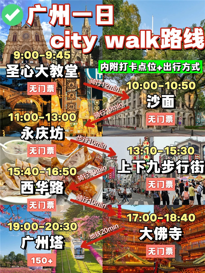 9:00 廣州塔云端漫步 除了登488米觀景臺,更推薦體驗(yàn)”逆風(fēng)穿越”高空探險(xiǎn)項(xiàng)目。冷知識:每周二至四上午10點(diǎn)前購票享早鳥7折優(yōu)惠!