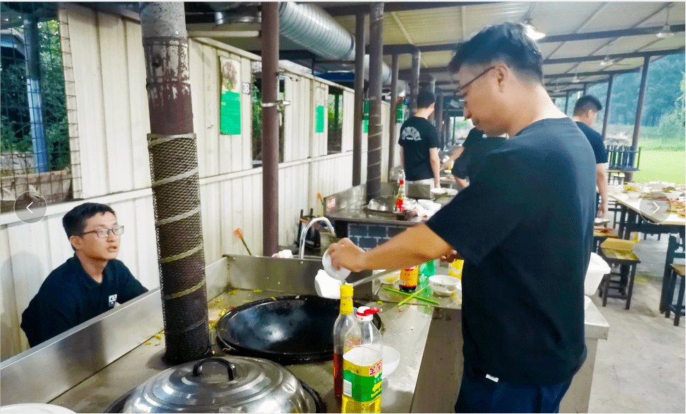 一天半的工作會議結(jié)束后,公司成員齊聚三瓜公社的大鍋灶趣味團(tuán)建活動現(xiàn)場,趣味團(tuán)建活動正式開始。盛夏的傍晚依舊有些炎熱,庭院中的微風(fēng)為大家?guī)砹艘唤z清涼。公司項(xiàng)目總監(jiān)張選和人事主管金金早在其他員工午休時頂著烈日帶回了新鮮的菜品,隨之大家迅速開始自行分工,不會做菜的開始洗菜、擇菜、搬柴,會做菜的拿起鍋鏟鐵勺為大家一展身手。都說會做飯的男人智商高,會做飯的女人運(yùn)氣好!在開始之前大家也沒想到,公司內(nèi)竟藏龍臥虎,在所有食材準(zhǔn)備妥當(dāng)后,幾位大廚紛紛開始了他們的表演。