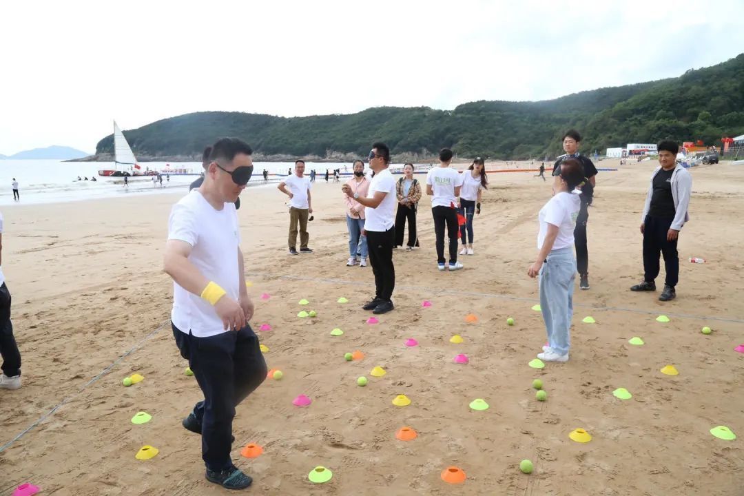 全員用眼罩蒙上雙眼,必須相信隊(duì)友的指揮,增強(qiáng)了隊(duì)員之間彼此的信任度。