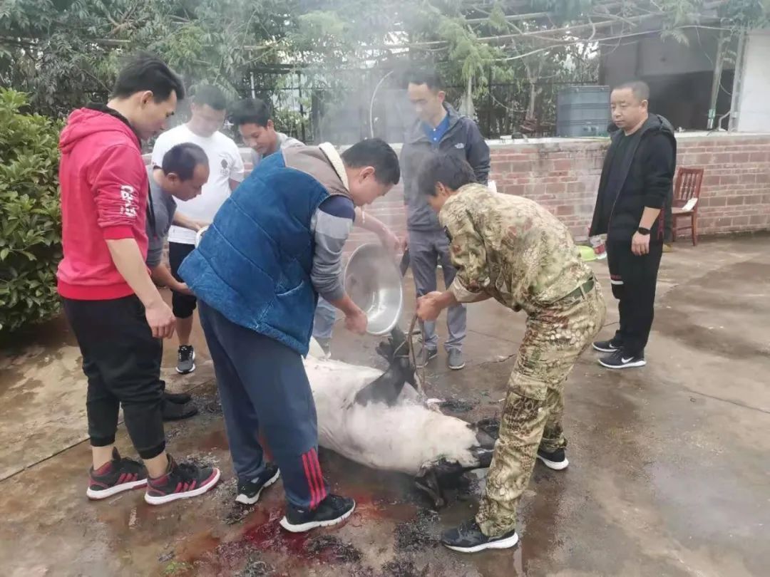 (“殺豬專業(yè)戶”陳相虎同事,每年殺豬都有他的身影。)