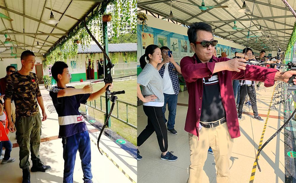 最后教官把我們分成了兩列縱隊(duì),分成了由鐘經(jīng)理帶領(lǐng)的一隊(duì)和包總工帶領(lǐng)的二隊(duì)。每位隊(duì)員兩支箭進(jìn)行PK比賽,射中箭靶得分最高的隊(duì)伍將勝出,而輸了的隊(duì)伍將會接受小小懲罰。經(jīng)過緊張激烈的比賽,一隊(duì)和二隊(duì)的得分居然打平了。