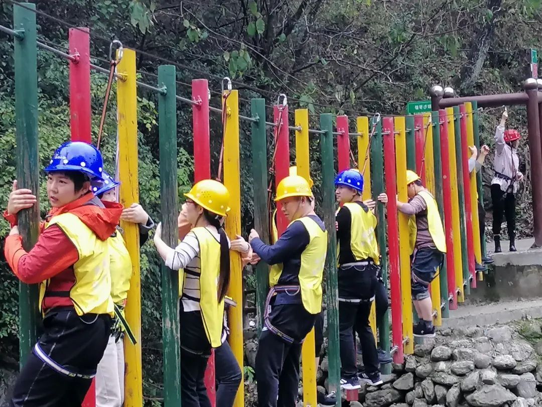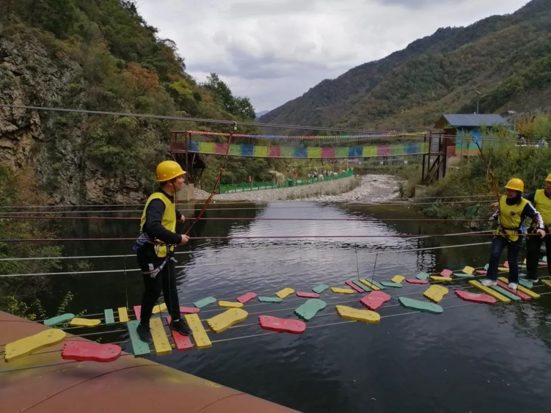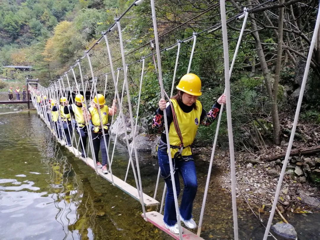 大腳丫、滑索過(guò)澗、緬甸橋、抽板過(guò)河、浮樁橋、凌空漫步、飛奪瀘定橋、蕩繩過(guò)河、水上飛、攜手并進(jìn)、彈琴過(guò)澗、悠悠橋、飛檐走壁、高空獨(dú)木橋、通天路、玻璃天橋、高空溜索等十七個(gè)趣味性、體驗(yàn)性、挑戰(zhàn)性、合作性的項(xiàng)目,將旅游與運(yùn)動(dòng)、觀光與體驗(yàn)、理論與拓展緊密結(jié)合。