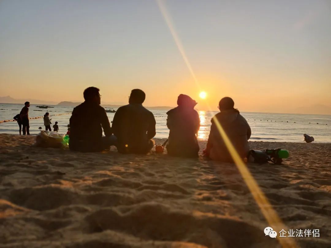 團(tuán)隊(duì)在沙灘上欣賞了日落