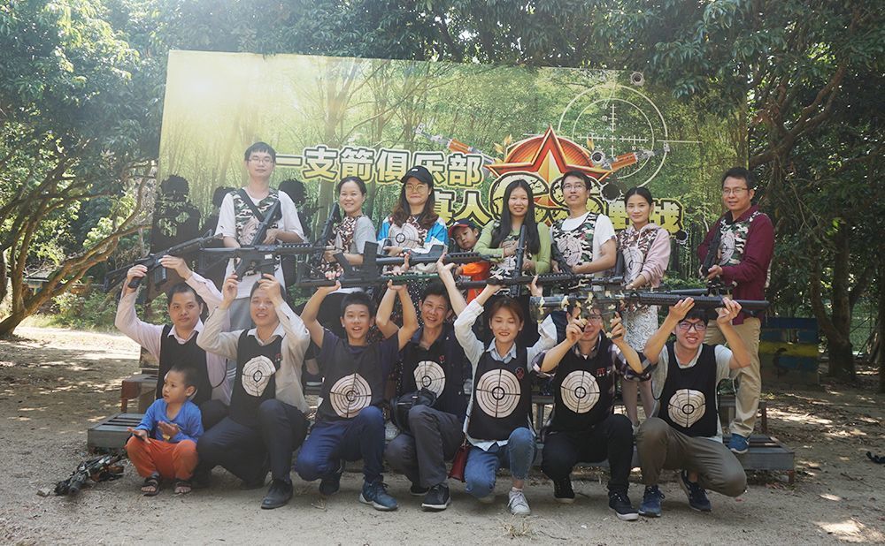 最后教官把我們分成了兩列縱隊(duì),分成了由鐘經(jīng)理帶領(lǐng)的一隊(duì)和包總工帶領(lǐng)的二隊(duì)。每位隊(duì)員兩支箭進(jìn)行PK比賽,射中箭靶得分最高的隊(duì)伍將勝出,而輸了的隊(duì)伍將會接受小小懲罰。經(jīng)過緊張激烈的比賽,一隊(duì)和二隊(duì)的得分居然打平了。